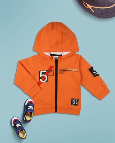 MINI KLUB Boys Graphic Printed Hooded Open Front Jacket