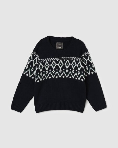 max Boys Striped Round Neck Long Sleeves Pure Cotton Pullover Sweaters