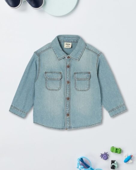 FABFARM Boys Standard Spread Collar Faded Denim Casual Shirt