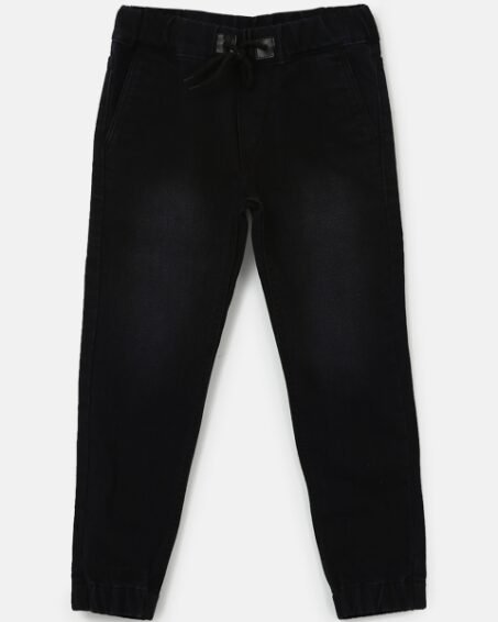 Urbano Juniors Boys Navy Blue Solid Slim Fit Denim Joggers