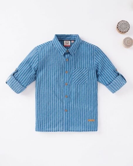 Ed-a-Mamma Boys Blue Printed Casual Cotton Shirt