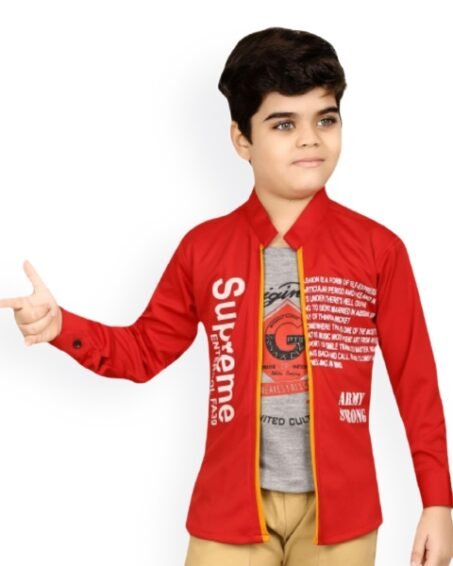 FABFARM Boys Standard Spread Collar Solid Denim Casual Shirt