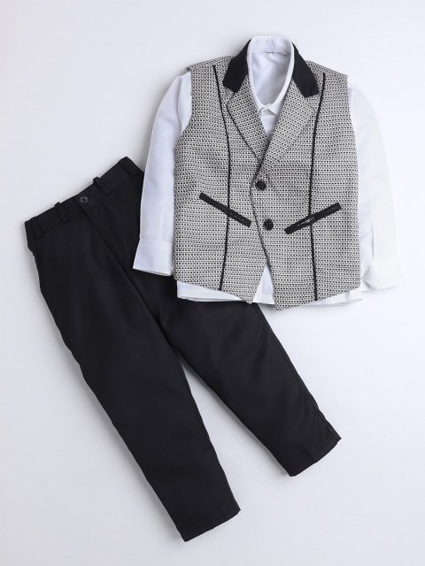 BAESD Boys Striped 3-Piece Single-Breasted Partywear Suit