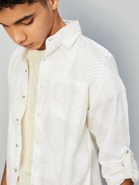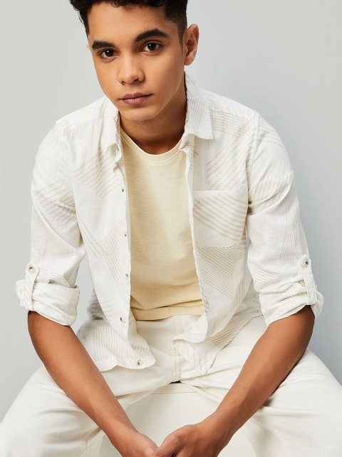max Boys Spread Collar Textured Cotton Casual Shirt