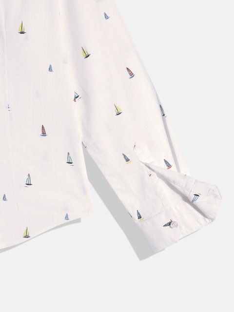 M&H Juniors Boys White Pure Cotton Printed Casual Shirt