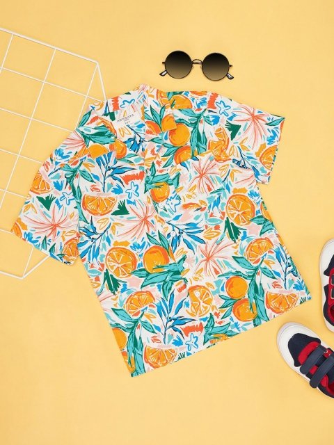 Pantaloons Junior Boys Floral Printed Spread Collar Casual Shirt